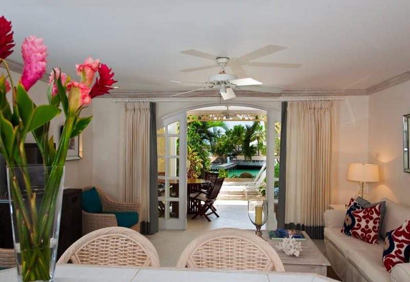 Apartment 150 is a one bedroom lagoonfront home that is approached through landscaped gardens . Inside, cool tropical furnishings create an atmosphere of informal luxury, a haven surrounded by the tranquil waters of the lagoon. The living room, with its heavenly view of the aquamarine water, leads on to the terrace, which provides a delightful area for outdoor dining just steps away from the water s edge. The well-appointed kitchen is designed for easy living and casual meals, with an open counter area, which provides a bar or serving area and looks over the terrace to an unparalleled view of the lagoon. Laundry facilities are quietly tucked away for use when needed. The spacious bedroom is beautifully decorated, with a large bathrooms tiled in marble. Residents enjoy the choice of air-conditioning, ceiling fans or the cooling trade winds. This charming apartment combines intimacy and comfort with all the amenities of the luxury resort.