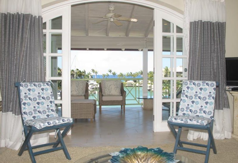 This top floor one bedroom home commands one of the best views in Port St. Charles as it looks over the beautiful water of the lagoon and has unrestricted sea view. This beautiful apartment is approached through landscaped gardens and are accessed by stair case or elevator. Inside, cool tropical furnishings create an atmosphere of informal luxury, a haven surrounded by the traquil waters of the lagoon. The living room, with its heavenly view of the aquamarine water, leads on to the terrace, which provides a delightful area for outdoor dining just steps away from the water's edge. The well-appointed kitchen is designed for easy living and casual meals, with an open counter area, which provides a bar or serving area and looks over the terrace to an unparalleled view of the lagoon. Laundry facilities are quietly tucked away for use when needed. The spacious bedroom is beautifully decorated, with a large bathroom tiled in marble. Residents enjoy the choice of air-conditioning, ceiling fans or the cooling trade winds. This charming apartment combines intimacy and comfort with all the amenities of the luxury resort.