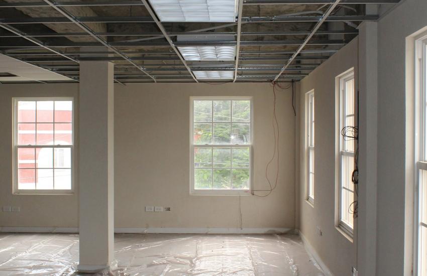This building is nearing completion and we are finalising the interior finishes. We offer new office spaces for rent with ceramic tiled floors at “Banstan” The Garrison. This architectually designed building is located next to the Old C.X.C Buildings and opposite the historic Garrison Savannah. There is also a cafe located on the ground floor as well.